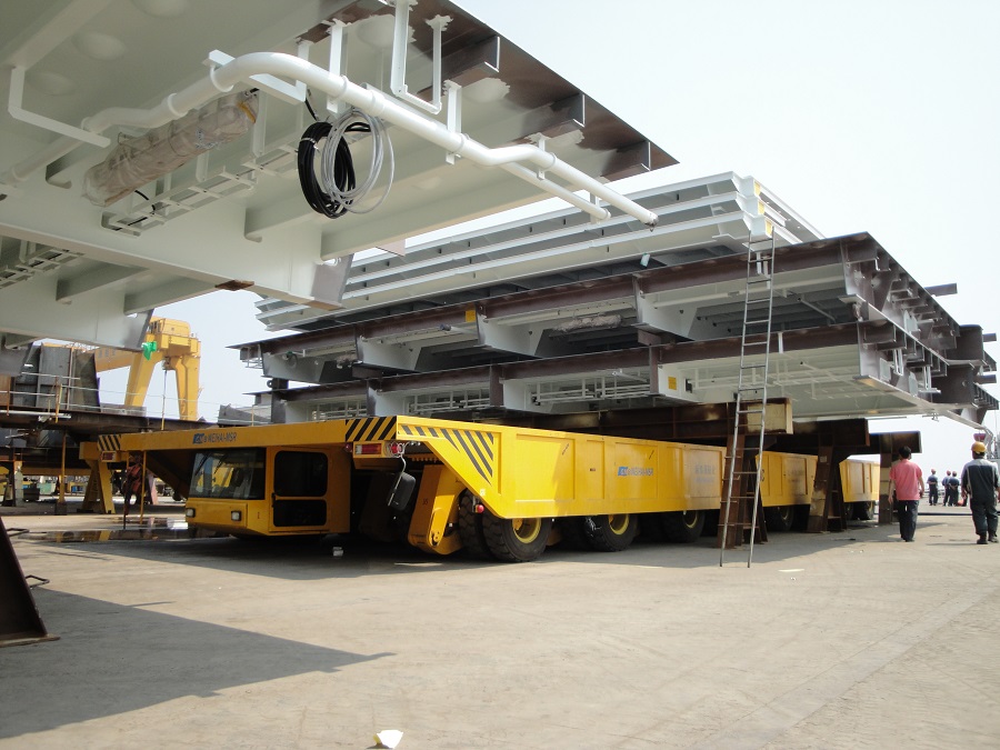 320T和500T液壓平板車拼車運輸造船部件(韓國)
